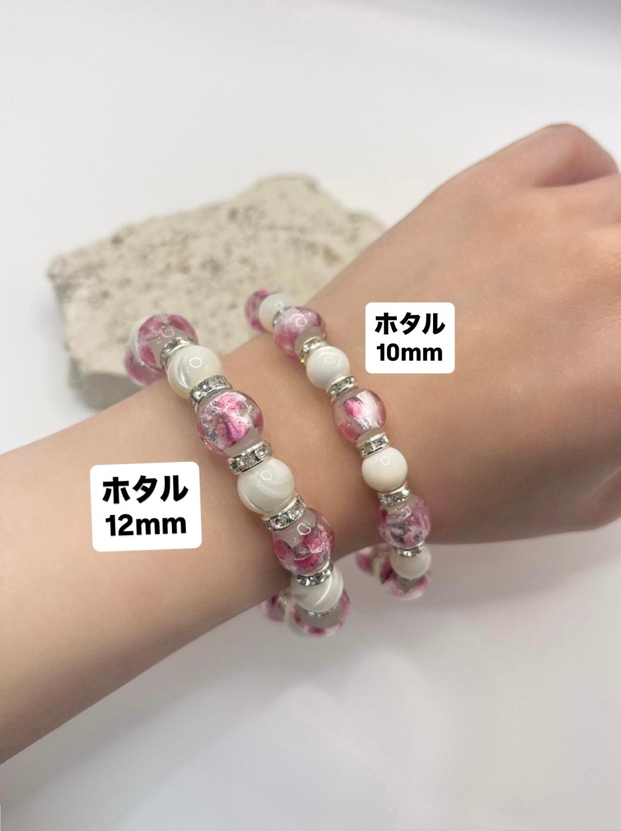 1つ1つ手作業で制作しているため天然石の色や形に若干の違いが生じる場合があります。ハンドメイドならではの風合いをお楽しみください。